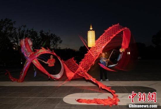 7月30日,三教廟、燃燈塔建筑群門前廣場,“舞龍”的通州人在古塔下,揮舞著龍身。2019年,北京市通州區(qū)隨著燃燈塔維修保護(hù)工程的竣工,景觀亮化提升工程隨即啟動。據(jù)燃燈塔亮化工程設(shè)計、施工方負(fù)責(zé)人韓天飛介紹, 施工前工程技術(shù)人員對塔身進(jìn)行3D建模,對燃燈塔高度,照明需要的角度,做了精準(zhǔn)測量。按照文物保護(hù)部門提出的不允許在文物上直接安裝燈具要求,以及“見光不見燈”的行業(yè)標(biāo)準(zhǔn),施工方設(shè)計了6根燈桿,分布在塔身周圍不同位置,采用投射光的方式,為燃燈塔提供光源。 依照相關(guān)管理辦法,經(jīng)過測算通州區(qū)經(jīng)緯度,每天開啟和關(guān)閉的時間略有不同。這個5人小組的成員會根據(jù)下發(fā)的通知,每天點(diǎn)亮和關(guān)閉燃燈塔照明。汛期或者大雨預(yù)警,電工師傅會對照明系統(tǒng)的電箱和燈桿、線路加強(qiáng)巡查,確保工程安全。目前,通州區(qū)“三廟一塔”修繕建設(shè)工程尚未全部完工,燃燈塔是建筑群里最早完成修繕,亮起來的建筑。整個工程預(yù)計2021年12月底全部完工,到時候“三廟一塔”建筑群都會點(diǎn)亮,成為通州區(qū)的新景觀。