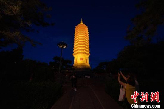 8月1日,游客走近夜晚點(diǎn)亮的“燃燈塔”,近距離感受千年古塔的莊嚴(yán)。燃燈塔(全稱燃燈佛舍利塔,又有俗稱通州塔)位于北京市通州區(qū),北運(yùn)河源頭岸邊,塔身共有十三層。燃燈佛舍利塔是古通州八景之一,位于通州區(qū)北端運(yùn)河西岸。它位于京城五河(即京杭大運(yùn)河、通惠河、溫榆河、小中河、運(yùn)潮減河)交匯的水口位置,與通州漕運(yùn)有著密切關(guān)系,是京杭大運(yùn)河北端的標(biāo)志。據(jù)《通州縣志》記載,燃燈塔始建于北周太平二年(557年),距今已有1400多年的歷史。那時此塔并不叫舍利塔,而是鎮(zhèn)水的土塔。根據(jù)考古專家們的考證,今天的燃燈塔應(yīng)是遼金建筑。